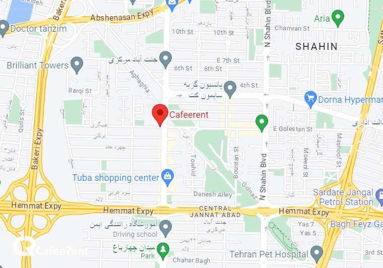 آدرس دفتر مرکزی کافه رنت: تهران - بزرگراه همت جنت آباد مرکزی - روبروی 20 متری گلستان مجتمع تجاری اکسین پلاک 1 ط2 اداری واحد 1