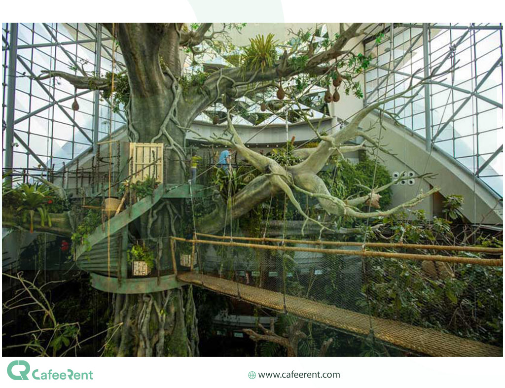 این مکان به گونه ای طراحی شده که کاملا مشابه به یک جنگل گرمسیری و بارانی باشد. رطوبت داخل این مجموعه نزدیک به 70% و درجه حرارت آن، 20 تا 28 درجه سانتی گراد است. این شرایط برای زیستن تمام گونه های جانوری و گیاهی مناسب است.